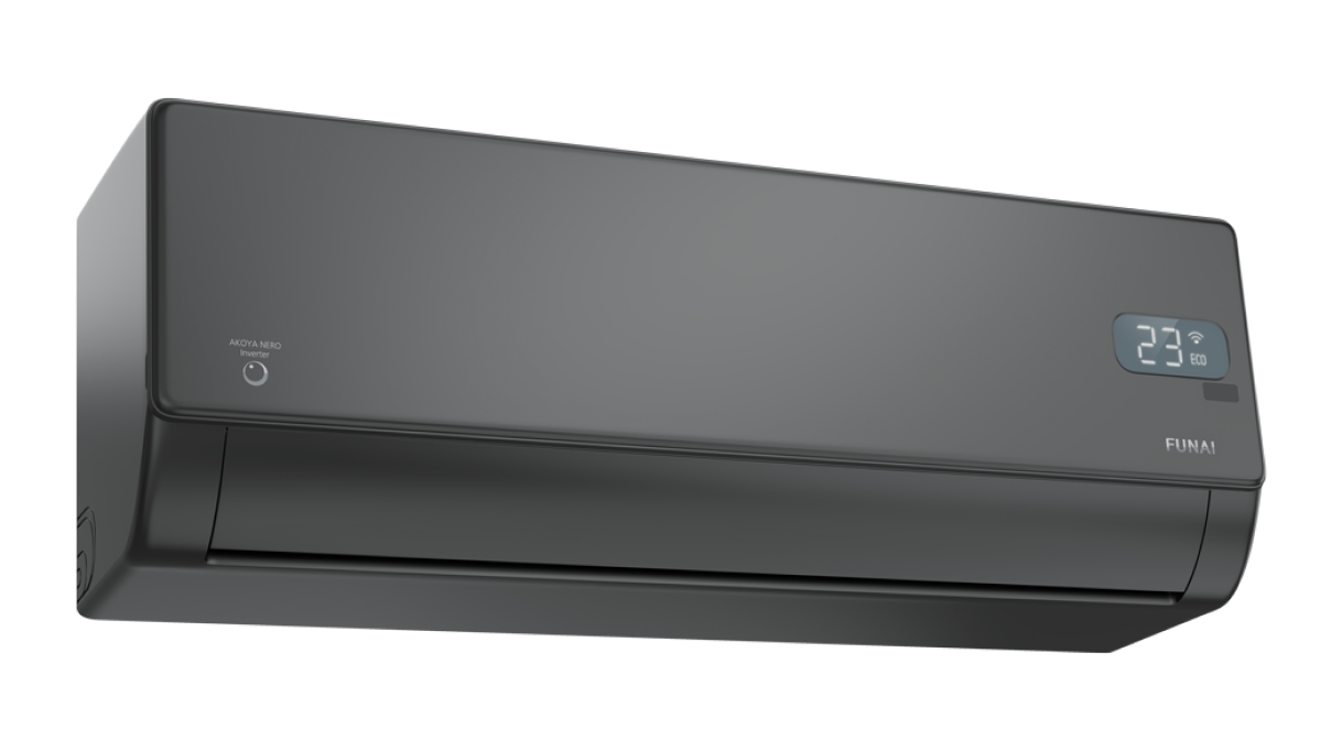 Представляем сплит-систему серии AKOYA NERO Inverter RAC-I-AN25HP.D01 от FUNAI — идеальное сочетание японского стиля и современных технологий для создания здорового и комфортного микроклимата в вашем доме.