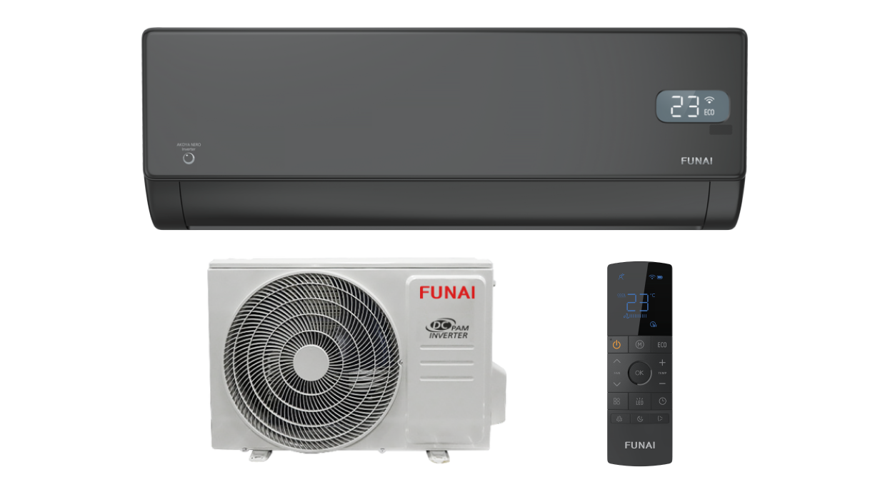 FUNAI AKOYA NERO Inverter RAC-I-AN25HP.D01 — это не просто кондиционер, а ваша забота о здоровье, тишина и комфорт в доме, экономия энергии и удобство управления. Выбирайте качество и стиль, проверенные японскими традициями, и создайте идеальный микроклимат для себя и своих близких!