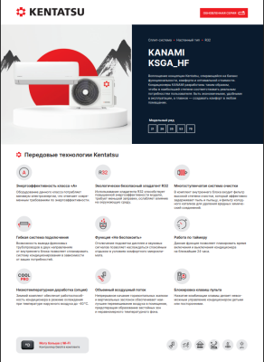 Документы и инструкция к кондиционеру Kentatsu KANAMI R32 KSGA21HFRN1/KSRA21HFRN1