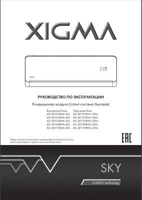Документы и инструкция к кондиционеру XIGMA XG-SKY27RHA